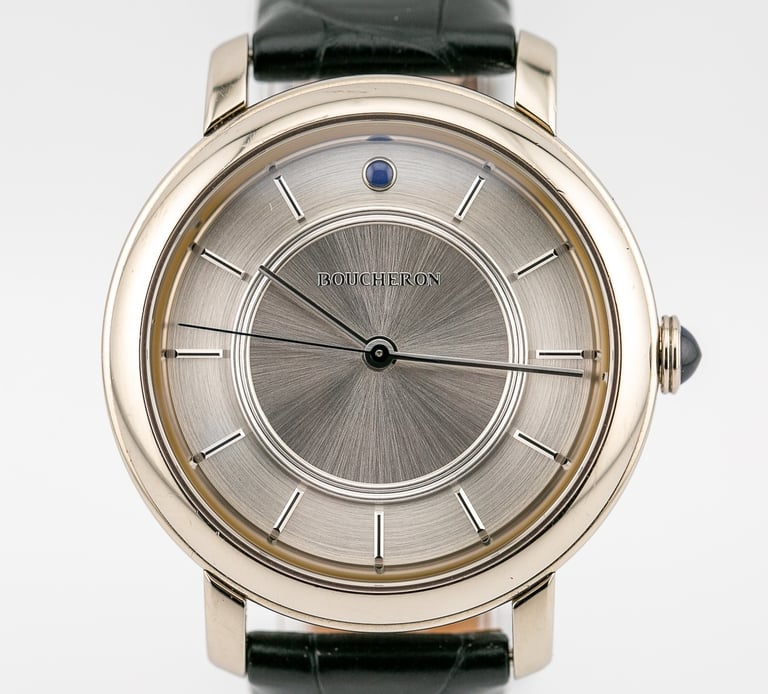Matière : Boîtier en or blanc / Bracelet en alligator / boucle en Or blanc