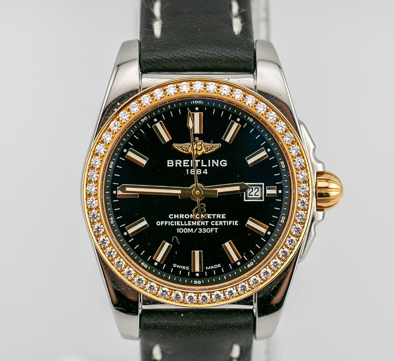 Plus de détails : Lunette sertie de brillant / Date à 3H / Couronne et Fond vissés