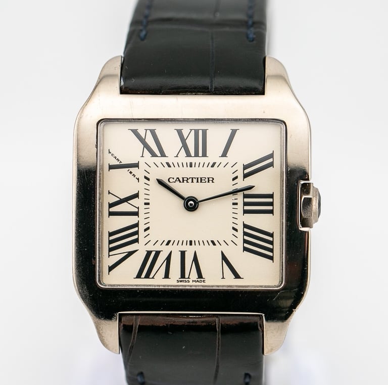 Matière : Boitier et BDR en Or Blanc / Bracelet en Cuir