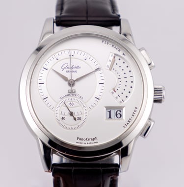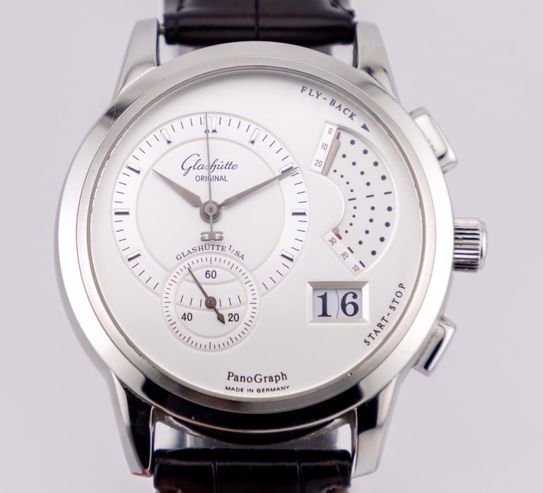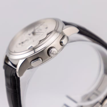 Cadran : Cadran Argent / Chrono Rétrograde entre 2 et 5h / Grande Date à 5h / Petite Seconde à 7h / Heure entre 7 et 12h