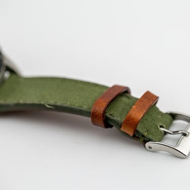 Matière : Boitier en Acier anodisé gris / Bracelet en Cuir et toile