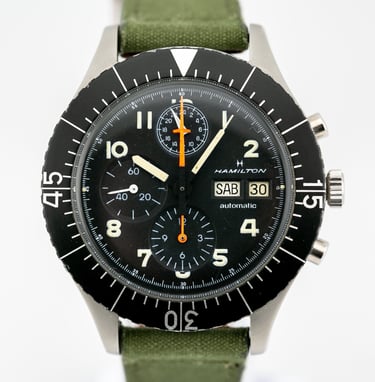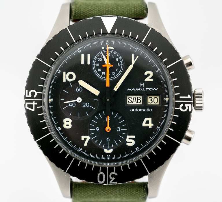 Cadran : Cadran noir avec date et jour à 3h, et Chronographe
