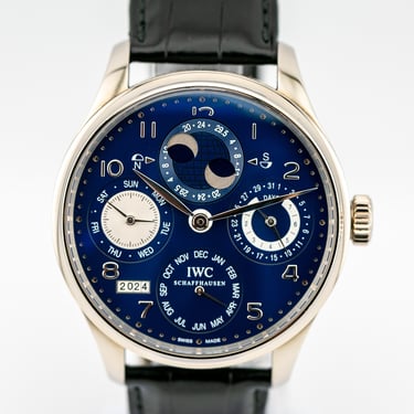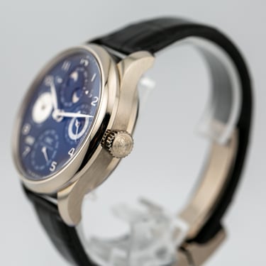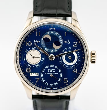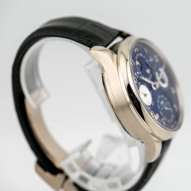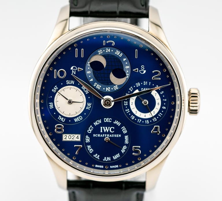 Cadran : Cadran bleu nuit / bleu profond avec Quantieme pepétuel affichant : date, jour, mois, année, phase de lune a double hémisphère