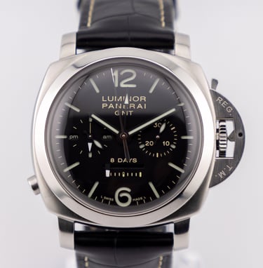 Cadran : Cadran Noir avec Petite seconde à 3h / Réserve de Marche à 6h /GMT à 9h