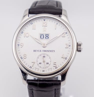 Cadran : Cadran Guilloché Blanc Chiffres Romains / Grande Date à Midi / Petite seconde à 6h