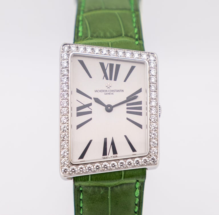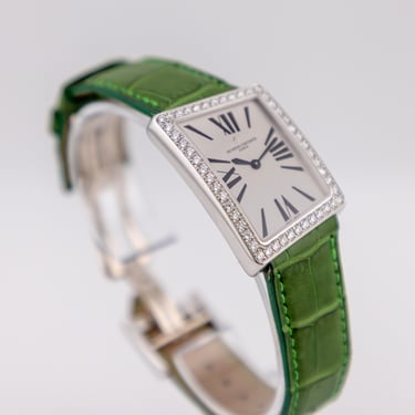 Matière : Boîtier Or Blanc sertie de Diamants / Bracelet Cuir d'Alligator / BDR en Or Blanc
